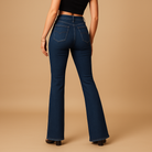 Create a timeless silhouette in these flared high-waist jeans designed to elongate the figure and add a refined retro touch. The high-rise cut shapes the waist, while the flared legs deliver a balanced and elegant line. Ideal for both day and evening looks, pairing easily with heels, trainers, or boots for effortless versatility.