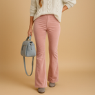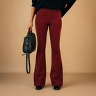 Make a stylish statement with these flared trousers featuring a modern retro-inspired design. The flattering cut enhances the silhouette, while the comfortable structure makes them ideal for both casual outfits and semi-formal looks. Pair them with a blouse or knit for an effortlessly chic appearance that combines timeless charm with contemporary flair.