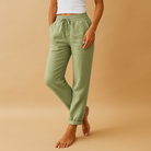 Experience effortless elegance in these flowing trousers designed for a relaxed yet refined look. The elastic waistband adapts naturally to the body, offering ease and flexibility throughout the day. A timeless piece that blends comfort and style, perfect for both casual moments and more polished occasions.