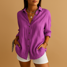 This women’s blouse features a lightweight design with a comfortable, airy fit. The simple and timeless style makes it suitable for both casual and smart-casual occasions. Its clean silhouette ensures easy pairing with skirts, trousers, or jeans. Available in sizes S to 2XL, it’s a versatile and elegant piece for warm-weather wear.